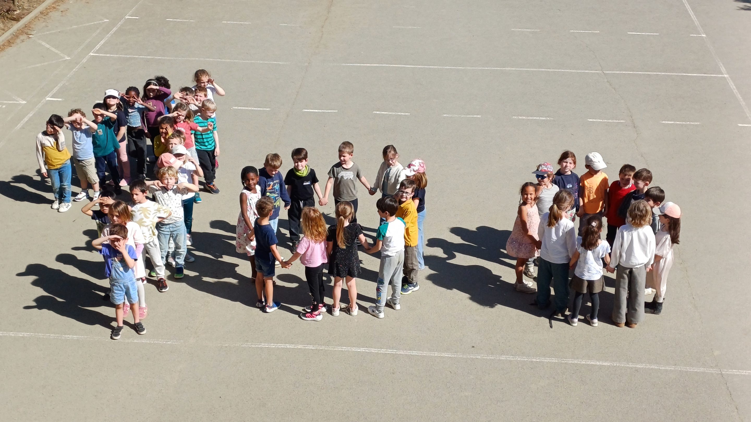 Au programme de la journée des CP : exposition des collections de 100 objets réalisées par les élèves, jeux en mathématiques autour du nombre 100, fabrication de lunettes et belle photo sur la cour représentant sur le nombre 100…